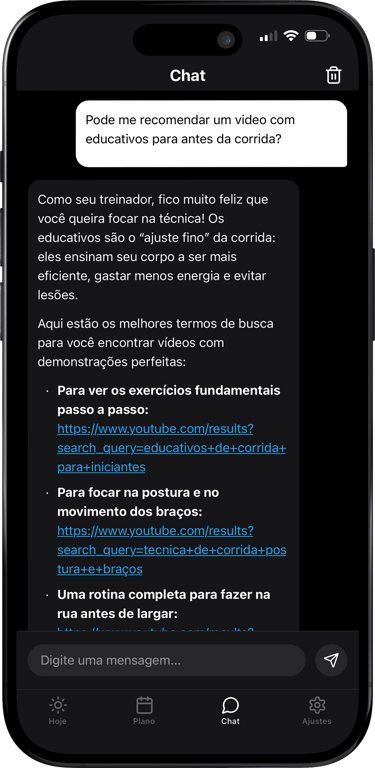 Converse com a IA para dúvidas sobre o seu treinamento.